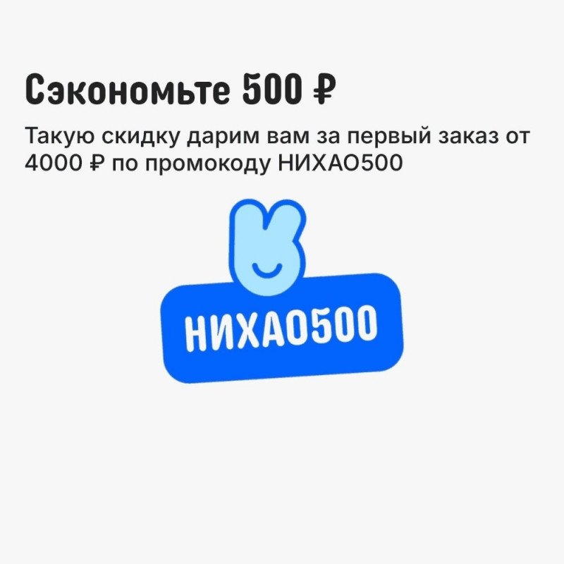 ▪️ Промокод: НИХАО500 — скидка 500 ₽ от 4000 ₽