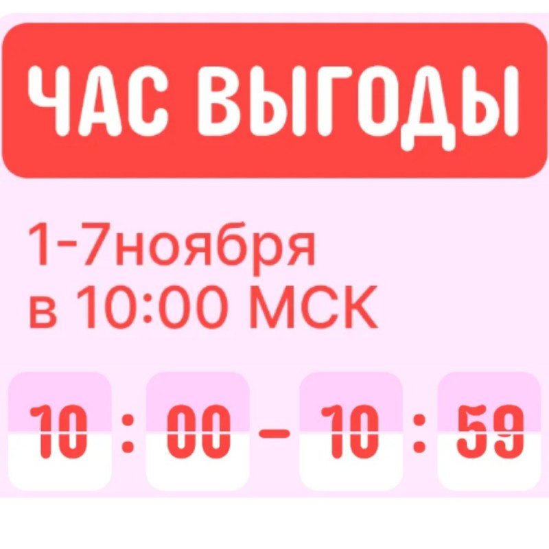 С 1 по 7 ноября ежедневно с 10:00 до 10:59 (МСК) в рамках распродажи «Дни выгоды» действует специальная акция «Час выгоды» → s.uberdeal.ru/bb2v?erid=2SDnjb...