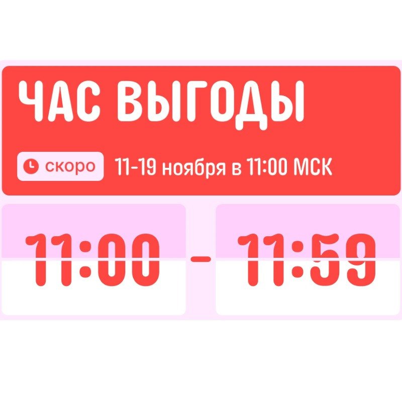 🔸 «Час выгоды». С 11 по 19 ноября: с 11:00 до 11:59 (по МСК) ► s.uberdeal.ru/bcG1?erid=2SDnjd...