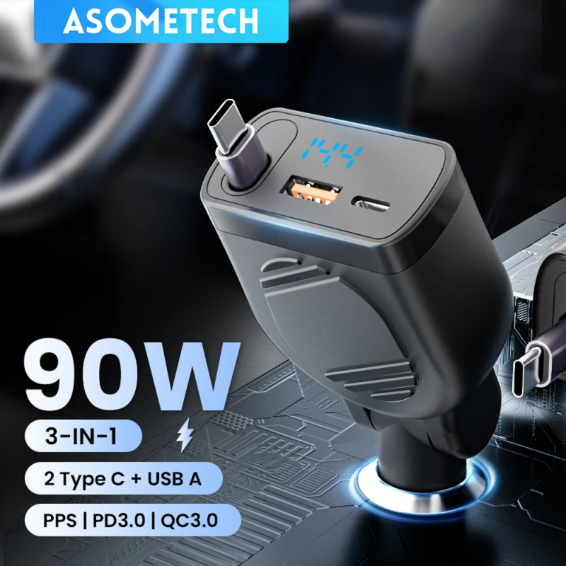 🔸 Автомобильное зарядное устройство ASOMETECH 90W (USB, Type-C, встроенный Type-C кабель) за - 916 ₽ с купоном продавца 88 ₽ от 90 ₽ (взять можно под ценой)