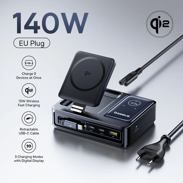 🔸 Зарядная станция Baseus Nomos Qi2 140W (беспроводная зарядка 15W, встроенный Type-C кабель 100W, USB, 2xType-C, дисплей) за - 3 876 ₽ с купоном продавца 1 952 ₽ от 1 954 ₽ (взять можно под ценой)