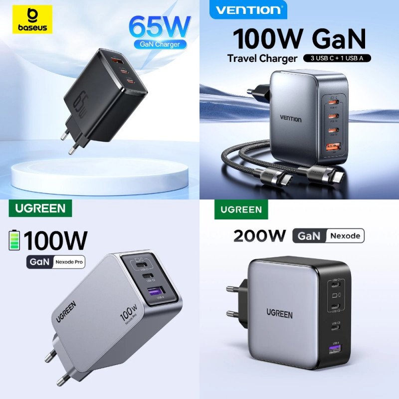 🔸 Зарядное устройство Vention GaN 100W (USB + 3xType-C) за