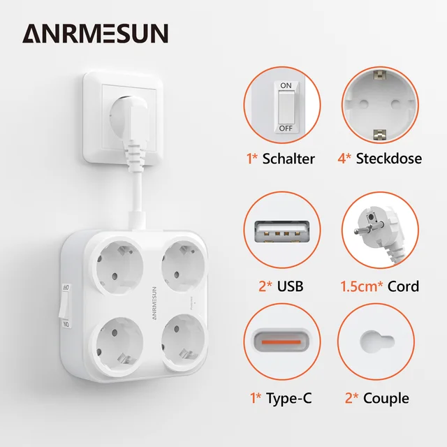 🔸 Удлинитель JINGMIN (3xAC, 2xUSB, 1xType-C),