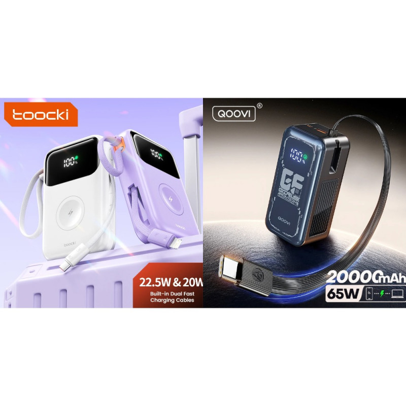 🔸 Внешний аккумулятор QOOVI 20000мАч 65Вт (встроенный Type-C кабель),