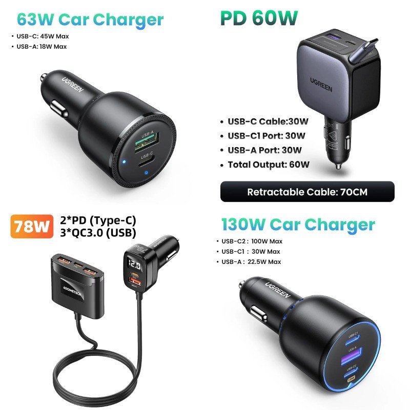 🔸 Автомобильное зарядное устройство Ugreen (USB + 2xType-C) 130W за