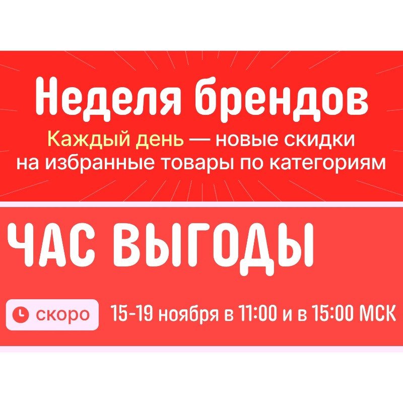 С 11 по 19 ноября ежедневно с 11:00 до 11:59 (МСК) в рамках распродажи 11.11 действует специальная акция «Час выгоды» → s.uberdeal.ru/bcP6?erid=2SDnje...