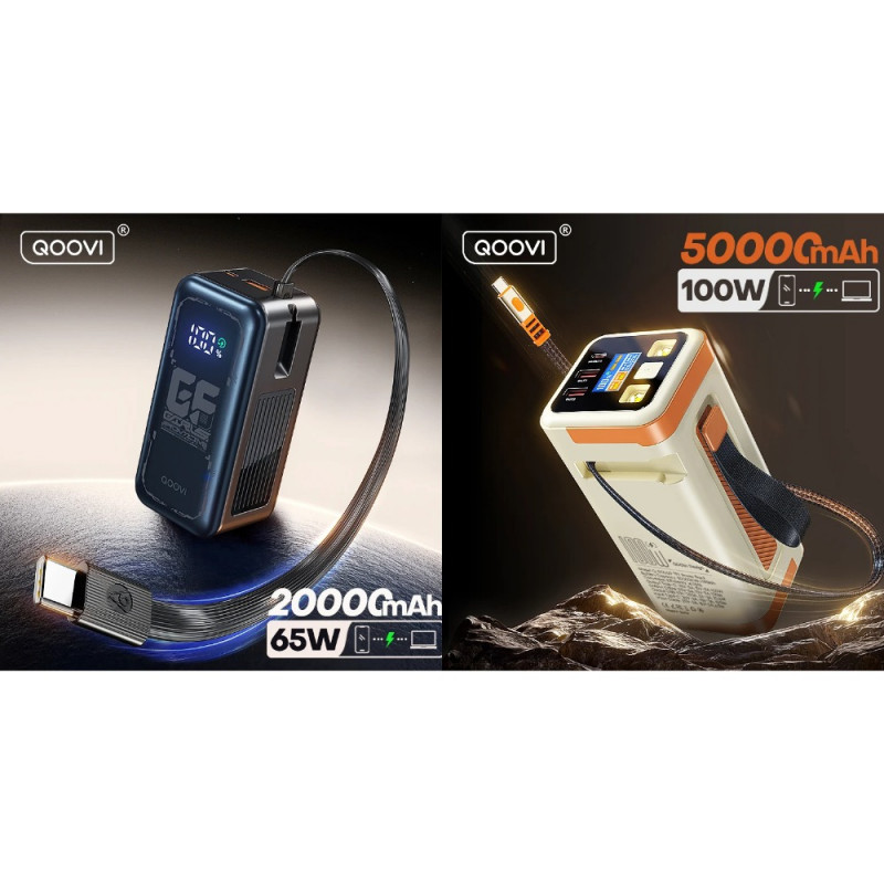 🔸 Внешний аккумулятор QOOVI 20000мАч 65Вт (встроенный Type-C кабель),