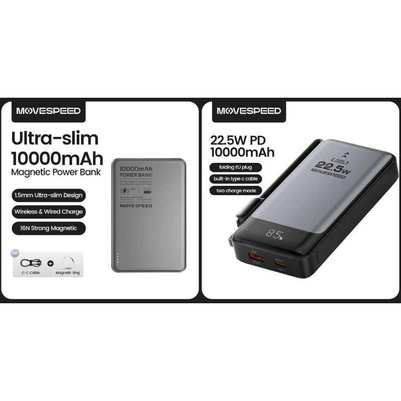 🔸 Внешний аккумулятор MOVESPEED S10 PD20W с беспроводной зарядкой (магнитное крепление), серый, золотистый 10000мАч за - 1296 ₽ с купоном продавца 177 ₽ от 178 ₽ (взять можно под ценой), дополнительно можно скинуть 64 ₽ за 73 монеты в приложении