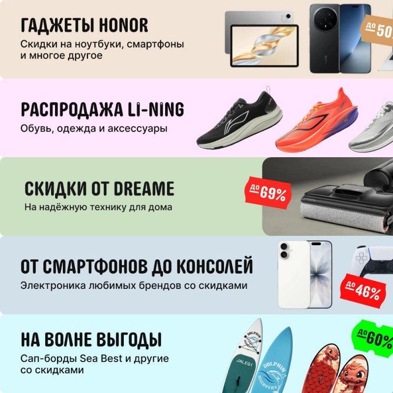 Реклама. ООО “АЛИБАБА.КОМ (РУ)”, ИНН 7703380158✅ На Алиэкспресс с 8 апреля 10:00 по 13 апреля 09:59 (МСК) проходят распродажи товаров из различных категорий.
