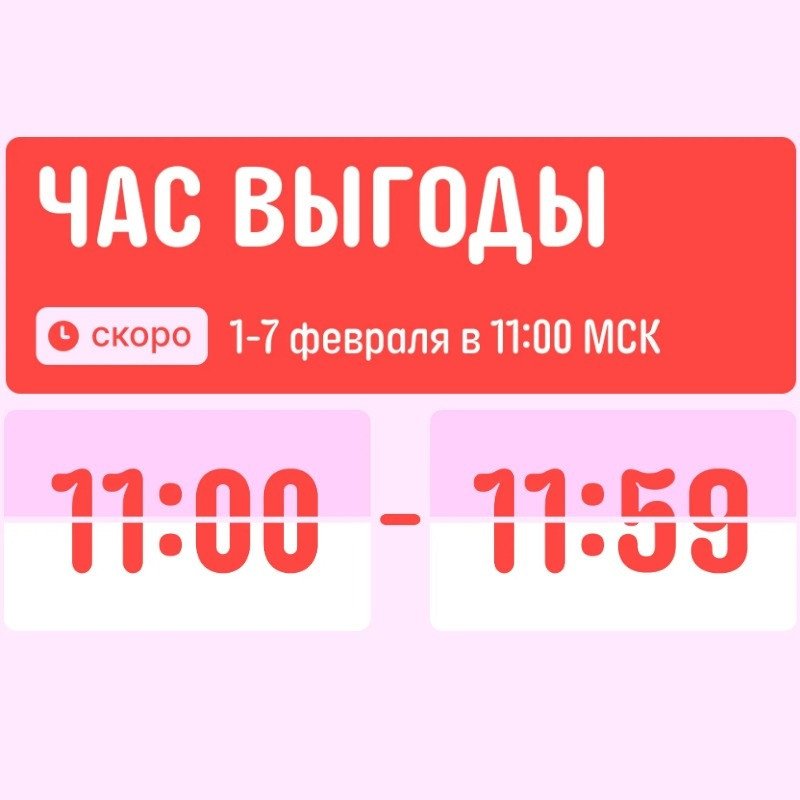 С 1 по 7 февраля ежедневно с 11:00 до 11:59 (МСК) в рамках распродажи «Дни выгоды» действует специальная акция «Час выгоды» → s.uberdeal.ru/beOI?erid=2SDnjd...