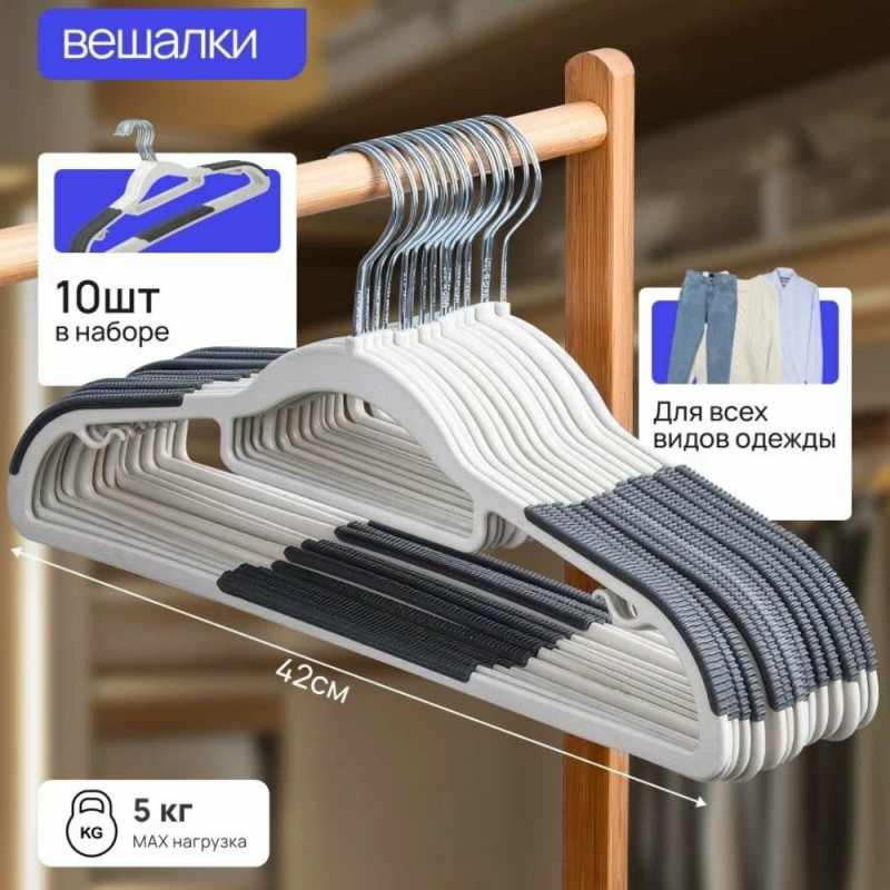 🔸 Набор вешалок для одежды Friendly Home (42см, нескользящие), графитовые — 10 штук за - 248 . Цена с промокодом и картой Яндекс Пэй