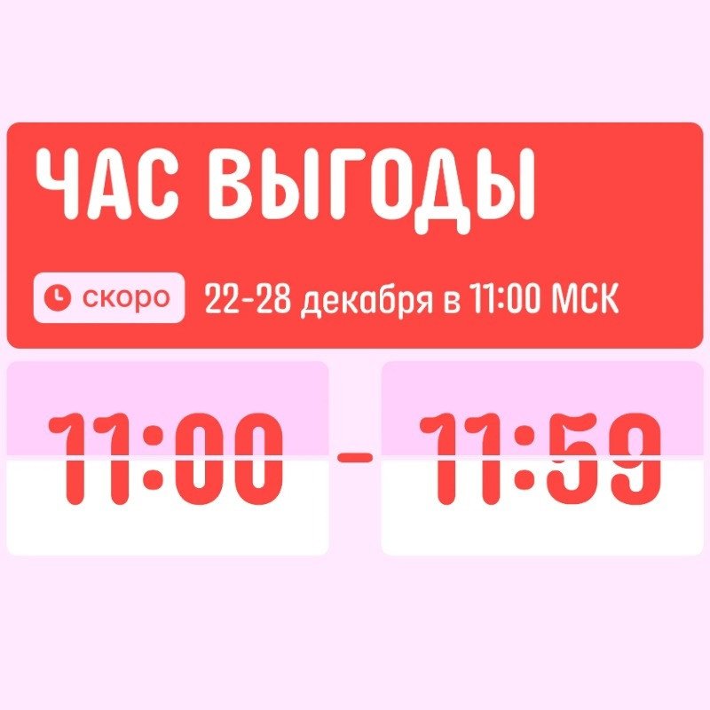‼️ 28 декабря (сегодня) с 11:00 до 11:59 (МСК) последний Час выгоды в рамках распродажи «Дни выгоды» → s.uberdeal.ru/bekI?erid=2SDnjd...