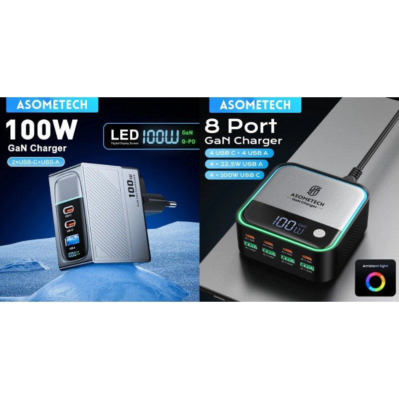 🔸 Настольное зарядное устройство ASOMETECH 100W GaN (4xType-C + 4xUSB) за - 2 359 ₽ . Цена указана при покупке через «Комбо» корзину ► s.uberdeal.ru/bgFs?erid=2SDnje...