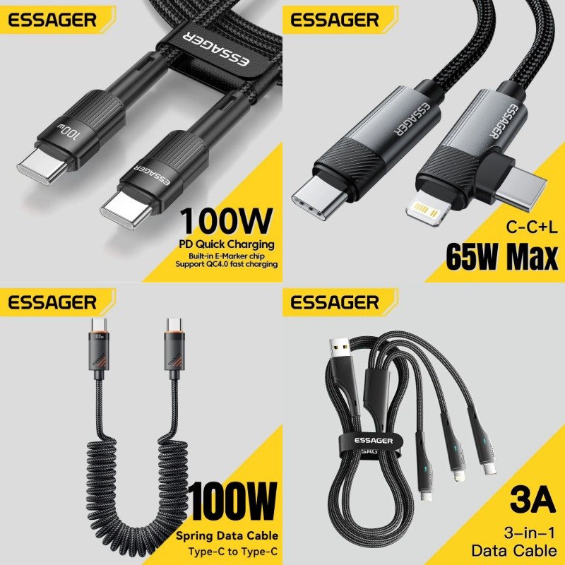 🔸 Пружинный кабель Essager, USB — Type-C, 7A, 100W — 1.2м за