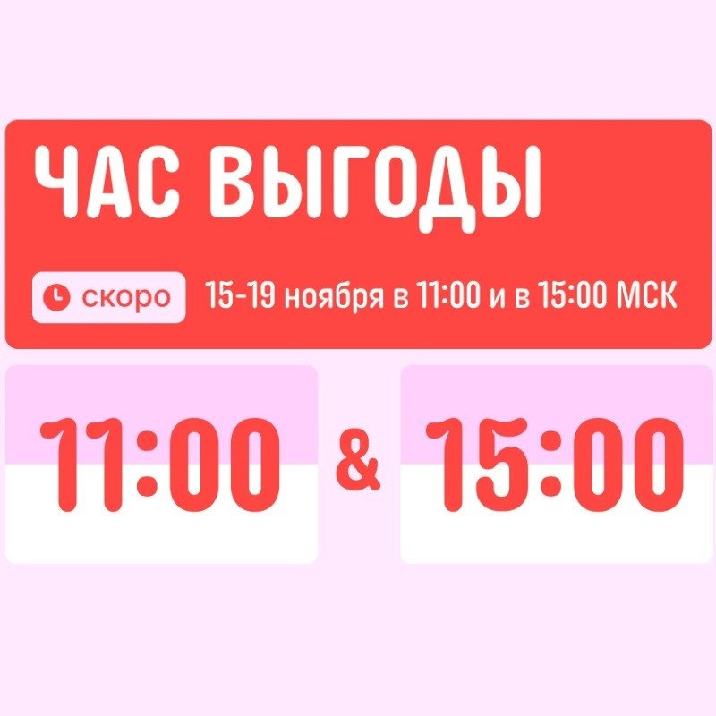• Совершайте покупки в период с 11:00 до 11:59 (МСК) и с 15:00 до 15:59 МСК для получения максимальной выгоды