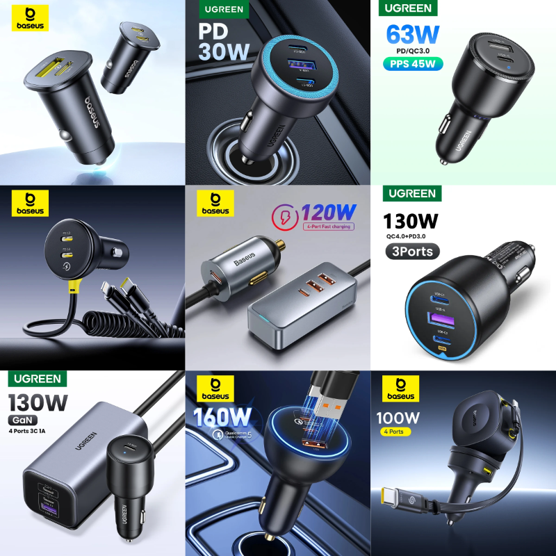 🔸 Автомобильное зарядное устройство Ugreen (USB + 3xType-C) 130W